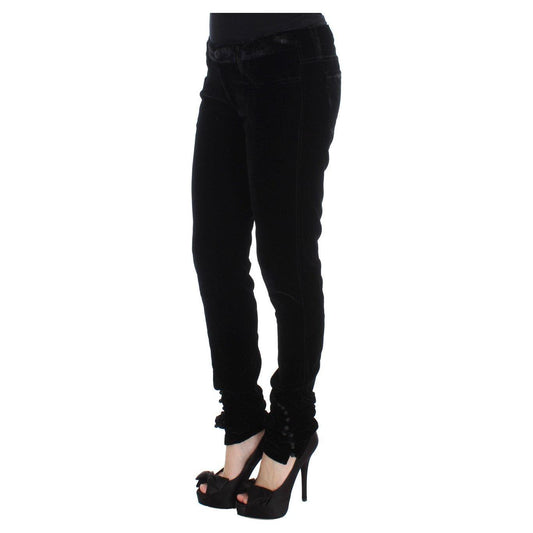 Ermanno Scervino Black Viscose Blend Velvet Slim Fit Pants