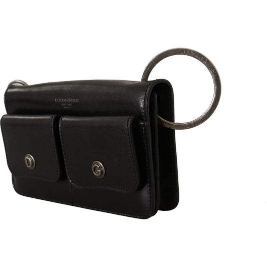 Dolce & Gabbana Black Leather Wristlet Mini Bag Card Bill Wallet