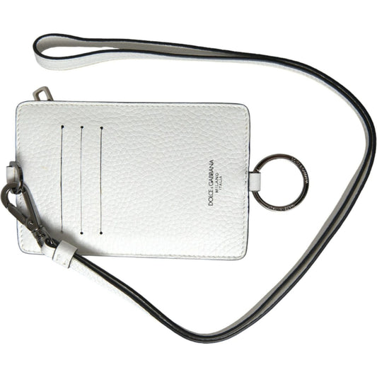 Dolce & Gabbana White Calf Leather Lanyard Logo Card Holder Wallet