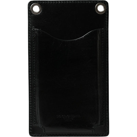 Dolce & Gabbana Black Calf Leather Lanyard Logo Card Holder Men Wallet