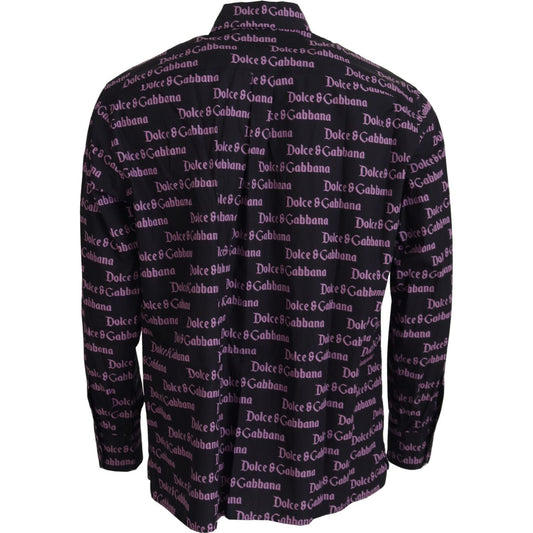 Dolce & Gabbana Black Purple Logo Slim Dress Formal Shirt