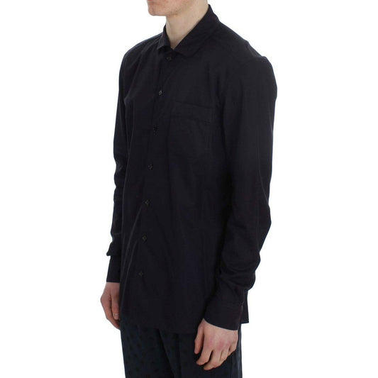 John Galliano Blue Casual Cotton Long Sleeve Shirt