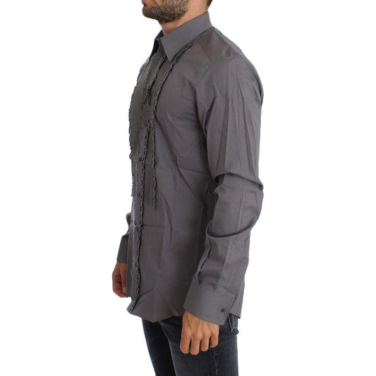 Dolce & Gabbana Gray Check GOLD Cotton Slim Fit Shirt