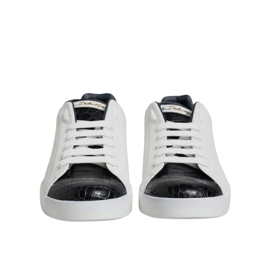 Dolce & Gabbana White Black Leather Portofino Sneaker Shoes