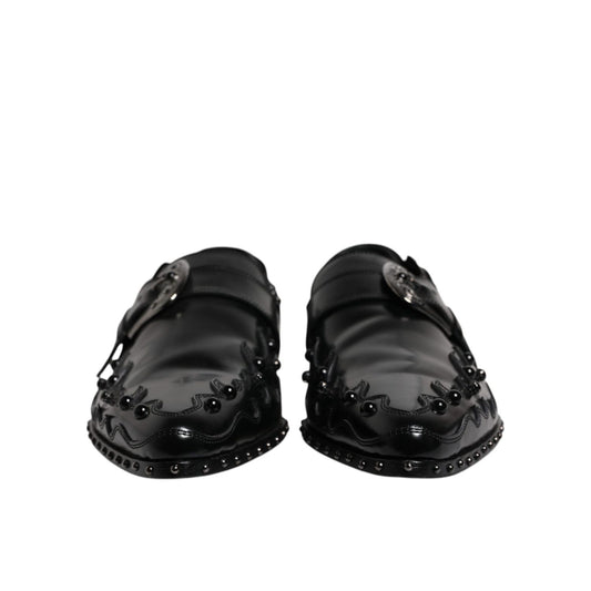 Dolce & Gabbana Black Embellished Derby Monk Strap Shoes