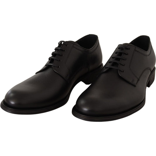 Dolce & Gabbana Black Leather Men Derby Formal Loafers Shoes