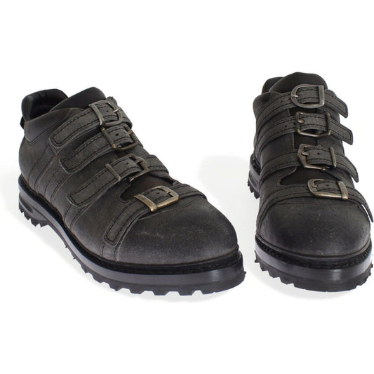 Dolce & Gabbana Gray Leather Ankle Strap Shoes Boots