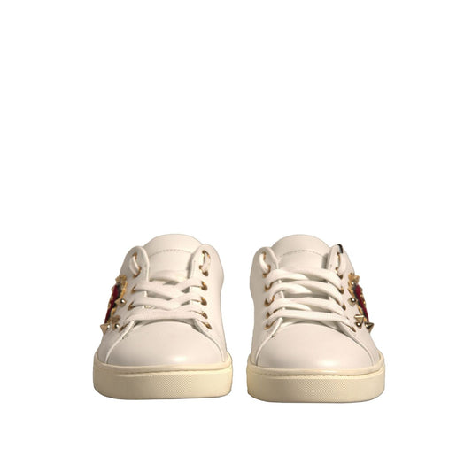 Dolce & Gabbana White Leather Heart Embellished Sneakers Shoes