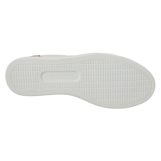 Dolce & Gabbana White Pink Leather Low Top Sneakers Shoes