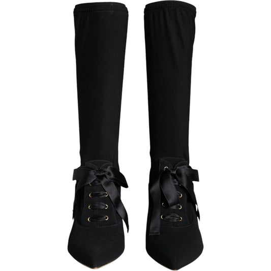 Dolce & Gabbana Black Stretch Stilettos Booties Socks Shoes