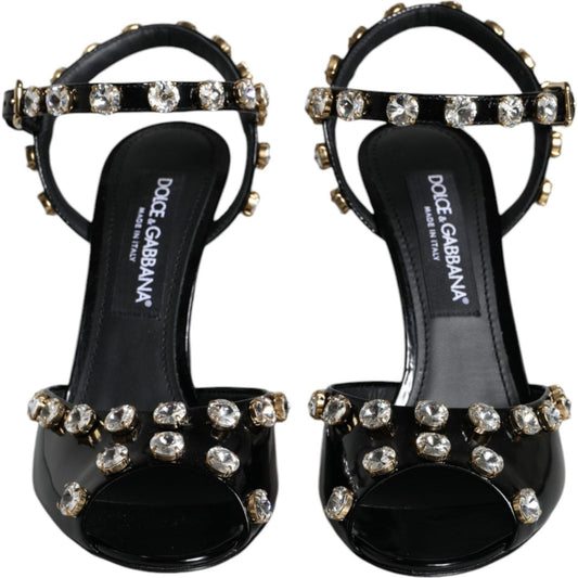 Dolce & Gabbana Black Leather Crystal Ankle Strap Sandals Shoes