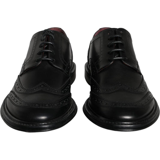 Dolce & Gabbana Black Leather Oxford Wingtip Formal Men Shoes