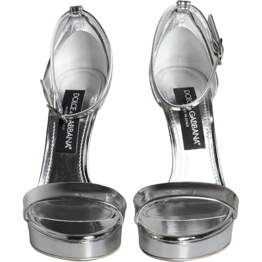 Dolce & Gabbana Metallic Silver Leather Keira Platform Sandals Shoes