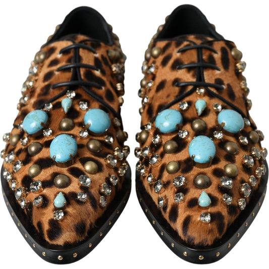 Dolce & Gabbana Brown Leopard Hair Crystal Dress Broque Shoes