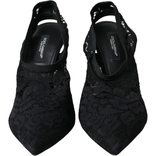 Dolce & Gabbana Black Lace Stretch Heels Slingbacks Shoes